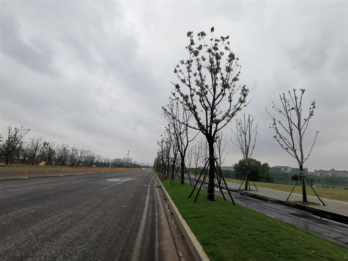 經(jīng)過改造后,曾經(jīng)雜路邊草叢生、破舊不堪的黃家湖大道變成一條最寬處達60米的景觀大道,整條道路煥然一新:刷黑的道路寬敞平坦,道路兩旁種植著各種喬木和灌木,像是一片片小森林,沿著綠化帶的步道徜徉,令人心曠神怡。