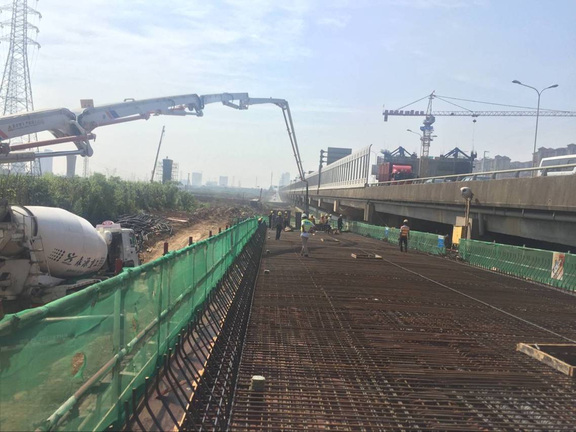 6月11日19時,經(jīng)過近11個小時的努力,三環(huán)南綜合改造工程烽勝路上下橋西側匝道首聯(lián)箱梁混凝土澆筑完成。