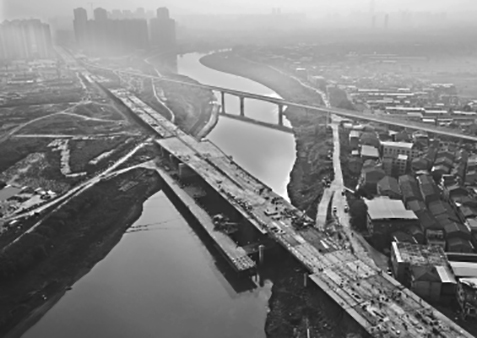 跨朱家河段橋梁是整個(gè)解放大道下延線控制性節(jié)點(diǎn)工程,其南岸是江岸幸福村,北岸是灄口南湖村,全長414米,雙向8車道,于今年1月20日正式開工。跨朱家河段橋梁全部為鋼箱梁結(jié)構(gòu),寬34-40米不等,重3100噸,施工時(shí)采用步履式頂推設(shè)備分5次將鋼箱梁頂推完成,每次頂推距離約30米。預(yù)計(jì)本月下旬朱家河橋?qū)⑼瓿蔀r青攤鋪,12月中上旬完成路燈安裝和地面標(biāo)線劃設(shè)等收尾工作,可保證年底通車目標(biāo)。
